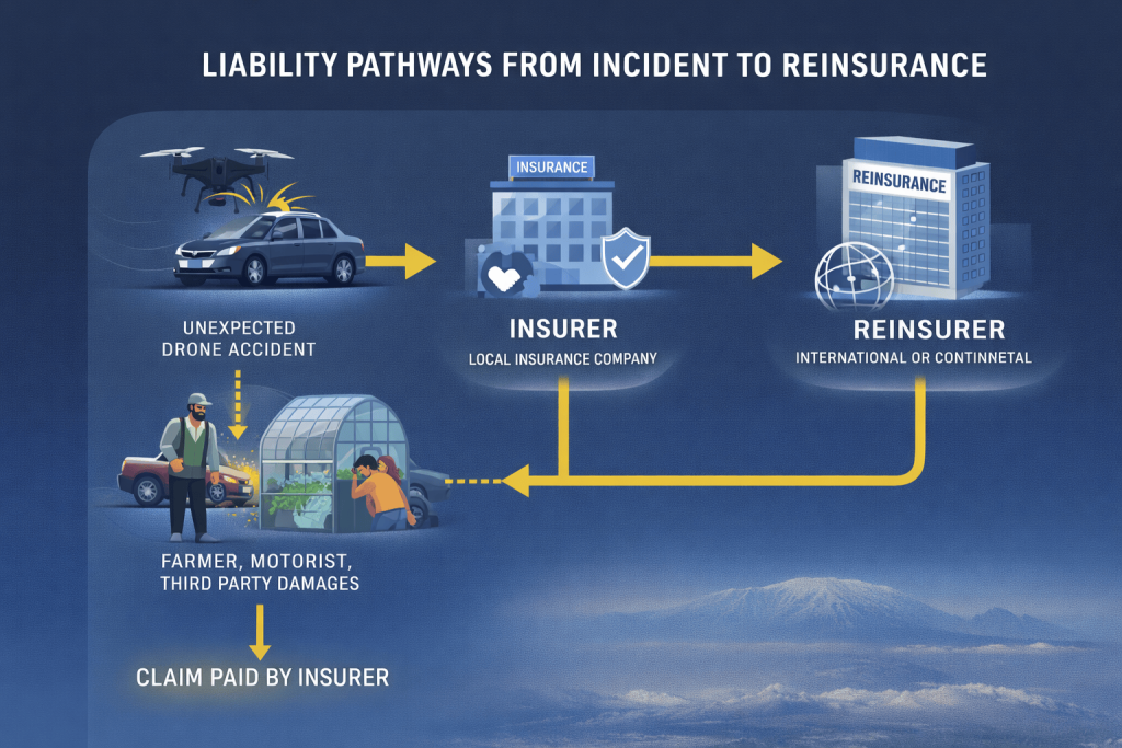 In Kenya, the Kenya Civil Aviation Authority (KCAA) requires licensed drone operators to carry third-party liability insurance, recognizing that financial accountability is essential when technology fails. When insurance works, innovation continues. When it does not, a single incident can ground operations, trigger lawsuits or shift costs onto communities and public infrastructure.