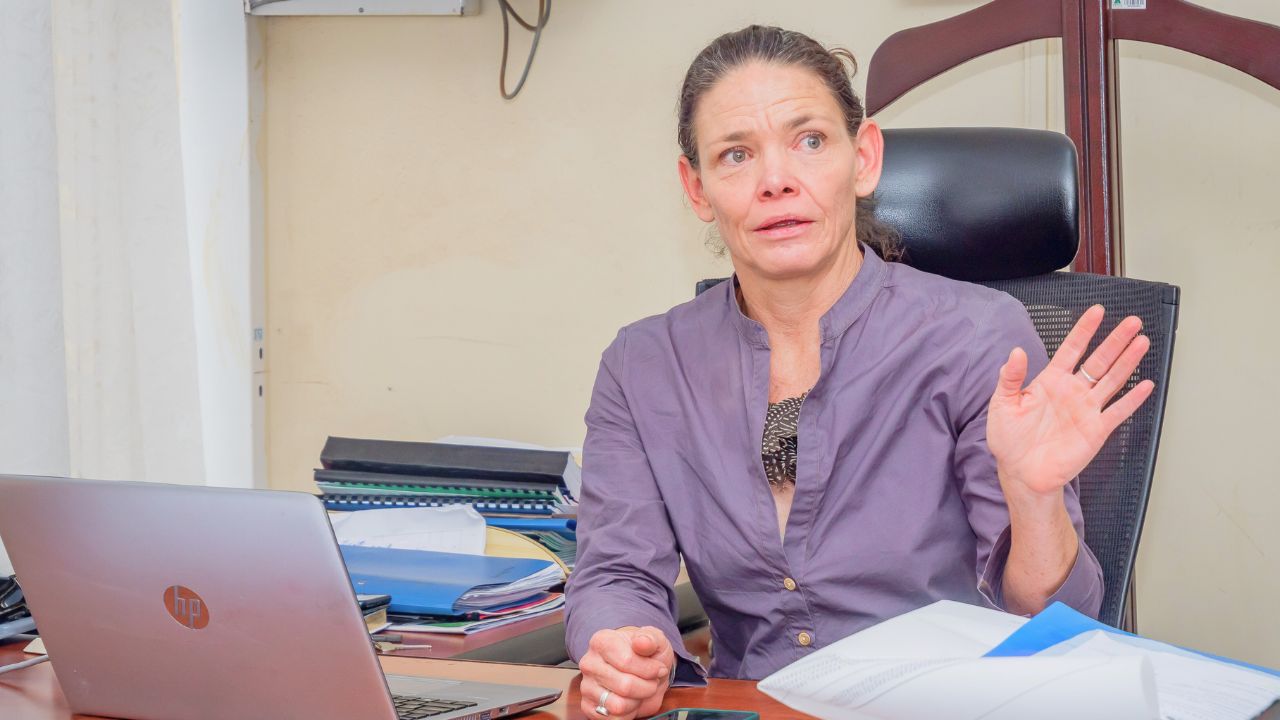 Susie Weeks speaks during the signing of the conservation agreement aimed at restoring the critically endangered mountain bongo to forests on the slopes of Mount Kenya on March 11, 2026.
